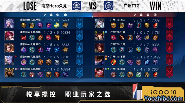 南京Hero久竞选用:花木兰、橘右京、周瑜、蒙犽、张飞