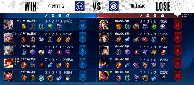 直播车讯 北京时间4月15日2022年KPL春季赛常规赛第三轮第三周第三日第一场,由广州TTG对阵佛山GK,以下是本场比赛快讯: