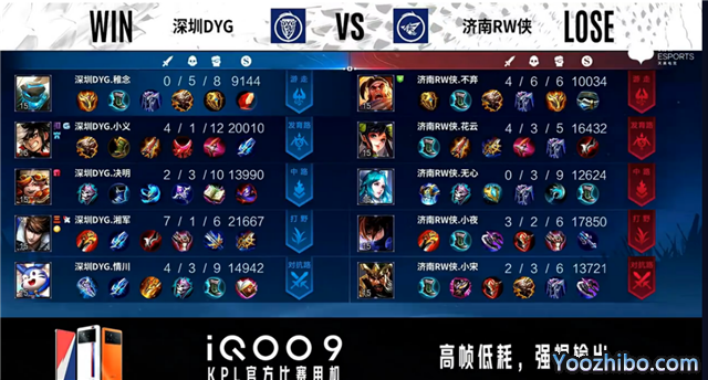 2分25秒,深圳DYG拿下先知主宰。3分49秒,暴君团,深圳DYG打出2换4。5分35秒,深圳DYG上路击杀苏烈后破掉济南RW侠上一塔。7分06秒,深圳DYG拿下主宰。9分03秒,深圳DYG拿下暴君。9分26秒,济南RW侠中路击杀沈梦溪。10分17秒,深圳DYG控下暗影暴君。10分13秒,深圳DYG破掉济南RW侠上二塔,随后控下暗影主宰。11分40秒,中路团,双方打出1换1。12分50秒,深圳DYG破掉济南RW侠下二塔。14分09秒,深圳DYG拿下暗影暴君。14分36秒,济南RW侠中路击杀梦琪。15分20秒,中路团,济南RW侠打出0换1。16分32秒,深圳DYG控下暗影主宰。17分12秒,深圳DYG破掉济南RW侠中二塔。17分40秒,深圳DYG中路击杀关羽。20分钟,野区团,济南RW侠打出0换2。20分40秒,济南RW侠下路击杀梦琪。21分10秒,济南RW侠击杀盾山后拿下风暴龙王。21分46秒,济南RW侠破掉深圳DYG下路高地塔。22分52秒,济南RW侠先后破掉深圳DYG中路高地塔和上路高地塔,随后高地团深圳DYG打出1换2。24分43秒,深圳DYG控下风暴龙王。25分19秒,高地团,深圳DYG团灭济南RW侠后推掉水晶赢得了本场比赛的胜利。