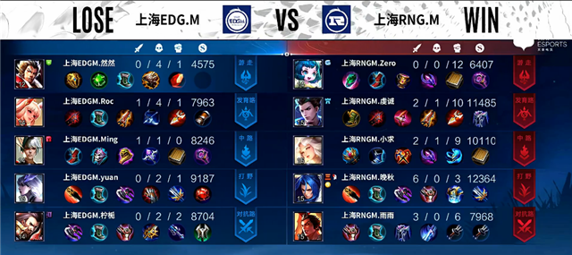 上海RNG.M禁用:鲁班大师、大乔、关羽、蒙恬