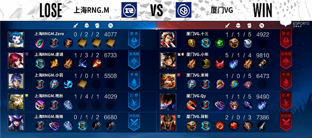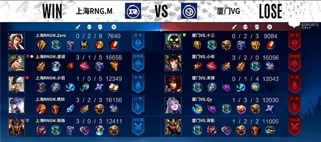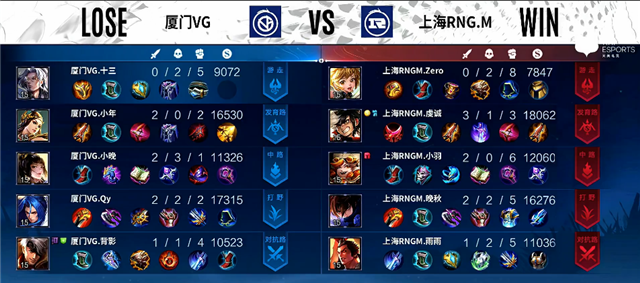 直播车讯 3月6日2022年KPL春季赛常规赛第二轮第一周第四日第一场,由厦门VG对阵上海RNG.M,以下是本场比赛快讯: