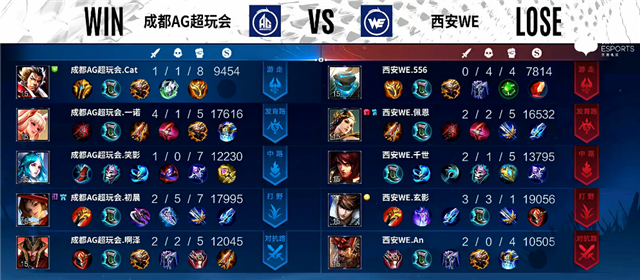 成都AG超玩会选用:夏侯惇、周瑜、露娜、东皇太一、虞姬