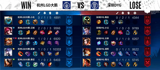 杭州LGD大鹅禁用:鲁班大师、兰陵王、沈梦溪、嬴政