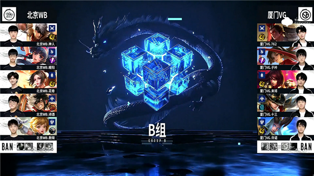 双方常规开局。55秒北京WB发育路击杀马可波罗拿到一血。1分25秒双方发育路1换1。2分11秒厦门VG拿下暴君。2分49秒厦门VG中路击杀夏侯惇。3分01秒北京WB野区击杀东皇太一。3分33秒北京WB摧毁敌方发育路外塔。4分38秒厦门VG拿下主宰。5分17秒野区团战北京WB击杀云缨。6分42秒北京WB拿下暴君。6分54秒厦门VG野区击杀夏侯惇。7分50秒发育路团战厦门VG击杀蒙犽。9分07秒主宰处团战厦门VG打出1换4。9分20秒厦门VG摧毁敌方中路外、二塔。10分51秒厦门VG拿下暗影暴君。13分02秒厦门VG拿下暗影主宰。13分13秒中路团战北京WB击杀东皇太一。15分48秒厦门VG拿下暗影暴君。17分53秒厦门VG拿下暗影主宰。19分29秒对抗路团战厦门VG打出1换3。20分16秒厦门VG摧毁敌方水晶拿下比赛。