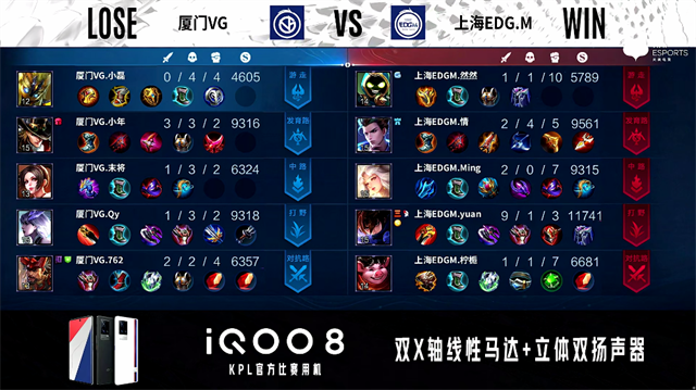 直播车讯 9月30日2021年KPL秋季赛常规赛第二周第二日第三场,由厦门VG对阵上海EDG.M,以下是本场比赛快讯。