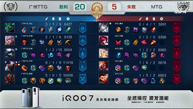 盘古拿下1分钟中路河道之灵。2分11秒上路交火,娜可露露拿下一血。3分钟下路团战,MTG打出0换2。3分10秒娜可露露拿下主宰。3分20秒盘古拿下暴君。5分钟蒙犽推掉下路一塔。5分50秒广州TTG强攻上路一塔,团战打出0换2。6分27秒MTG上路一塔被破。7分26秒不知火舞被击杀。7分34秒娜可露露拿下暴君。9分32秒蒙犽被击杀。9分40秒公孙离推掉上路二塔。10分11秒公孙离推掉中路一塔。10分48秒娜可露露拿下暴君。11分13秒娜可露露拿下主宰。12分44秒广州TTG强攻下路高地塔,蒙犽被击杀。12分57秒广州TTG推掉中路高地塔。14分07秒上路团战,MTG打出0换2。15分02秒盘古拿下暴君。18分10秒娜可露露拿下主宰。19分25秒高地团战,MTG打出0换2。20分25秒盘古拿下风暴龙王。21分钟MTG推掉中路一塔和二塔。22分10秒MTG强攻高地塔,双方1换1。25发32秒风暴龙王团,广州TTG打出1换4,公孙离拿下三杀。26分29秒广州TTG推掉水晶追平比分。