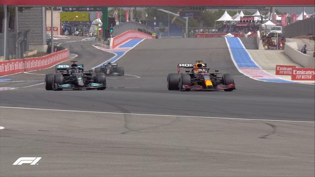 五盏红灯熄灭,比赛正式开始。第1圈,杆位发车的维斯塔潘在2号弯冲出赛道,汉密尔顿趁机超到第一领跑。而荷兰人因冲出赛道产生的切弯行为未被赛会调查。第2圈,第8位发车的诺里斯在1号弯也冲出赛道。此时,赛道上的前十分别为:汉密尔顿、维斯塔潘、博塔斯、佩雷兹、塞恩斯、加斯利、勒克莱尔、阿隆索、里卡多和诺里斯。维斯塔潘在第2圈和第3圈接连刷出了1分39秒613和1分39秒571的最快单圈,但汉密尔顿在第4圈时,还是将两人之间的差距拉开到了1.549秒。