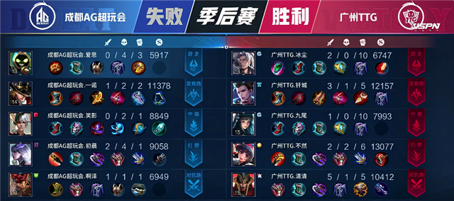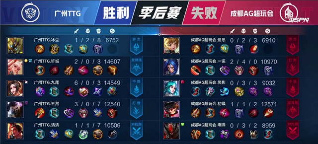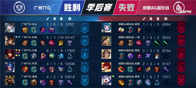 直播车讯 6月6日2021KPL春季赛季后赛胜者组第一轮,由成都AG超玩会对阵广州TTG,以下是本场比赛快讯。