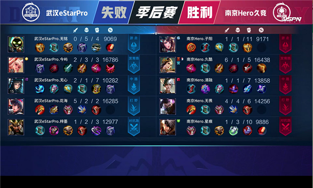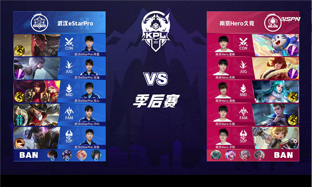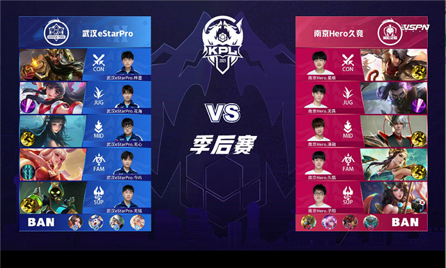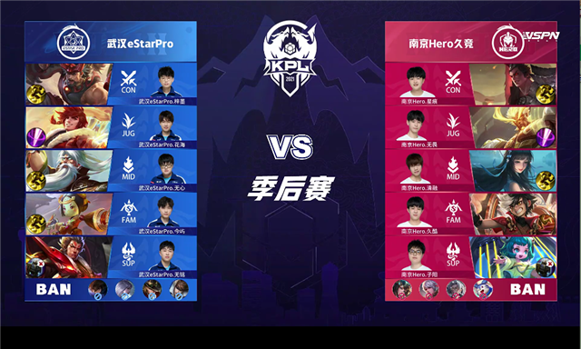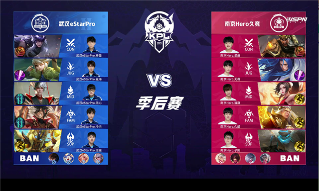直播车讯 6月5日2021KPL春季赛季后赛胜者组第一轮,由武汉eStarPro对阵南京Hero久竞,以下是本场比赛快讯。