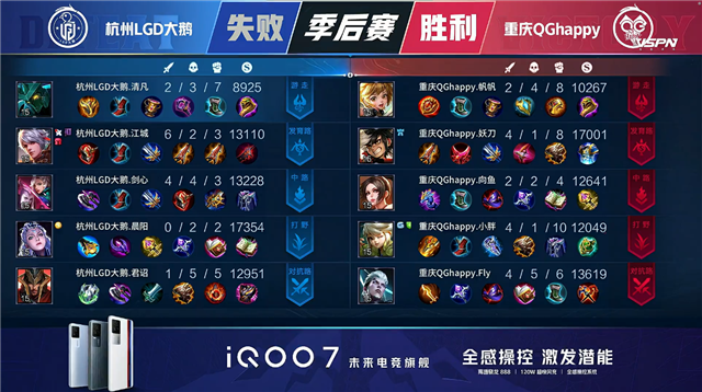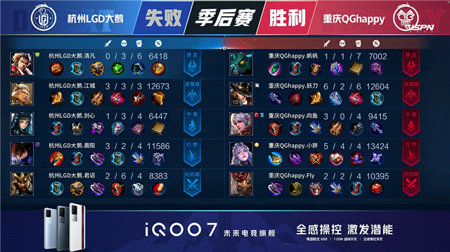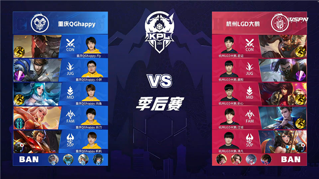 直播车讯 6月3日2021KPL春季赛季后赛败者组第一轮第一场,由重庆QGhappy对阵杭州LGD大鹅,以下是本场比赛快讯。