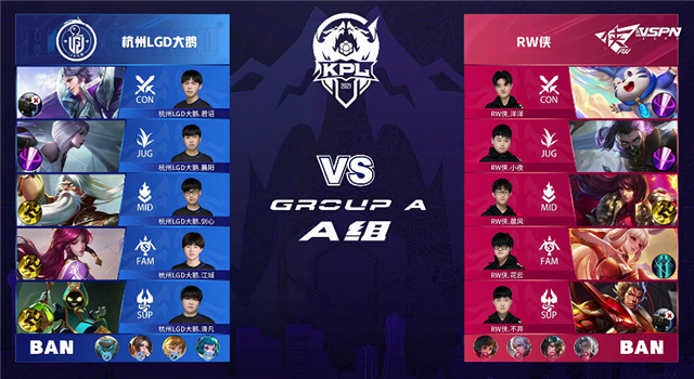杭州LGD大鹅禁用: 盾山、不知火舞、孙膑、蔡文姬