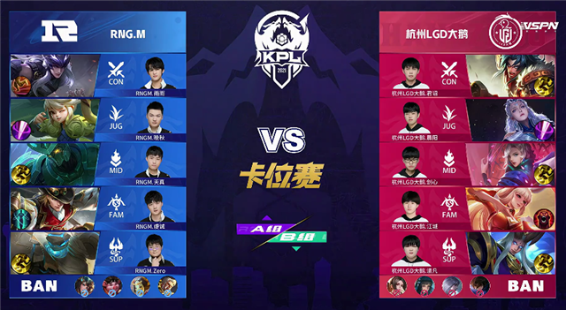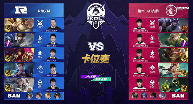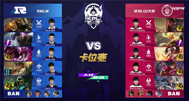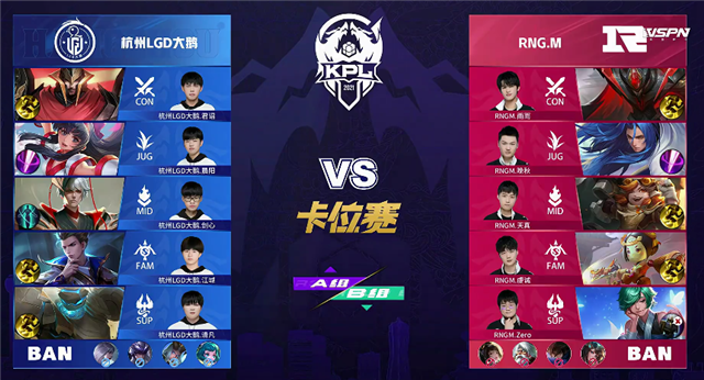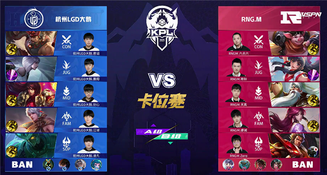 直播车讯 5月11日2021KPL春季赛常规赛第八周第一日第二场A/B卡位赛,由A组杭州LGD大鹅对阵B组RNG.M,以下是本场比赛快讯。
