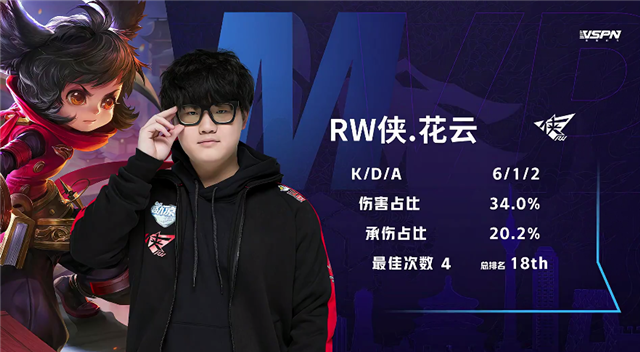 双方平稳开局。2分19秒阿古朵拿下暴君。4分35秒蒙恬推掉下路一塔。5分钟中路团战,公孙离拿下一血,双方打出1换1。5分30秒RW侠推掉上路一塔。6分20秒蒙恬被击杀。6分50秒韩信击杀马超。7分20秒韩信拿下暴君。7分55秒韩信击杀马超。8分钟韩信推掉下路二塔。8分40秒阿古朵被击杀。9分钟RW侠推掉上路二塔。10分钟暴君团,双方1换1。10分30秒韩信拿下暴君。11分钟韩信拿下主宰。13分钟RW侠推掉上路高地塔,不知火舞被击杀。14分58秒韩信拿下暴君。15分40秒韩信拿下主宰。16分40秒中路团战,RW侠顺势推掉下路和中路高地塔,团战RW侠打出3换4。17分31秒RW侠攻破水晶拿下本场比赛胜利。