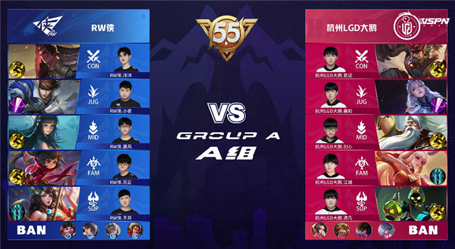 杭州LGD大鹅禁用:镜、阿古朵、不知火舞、虞姬