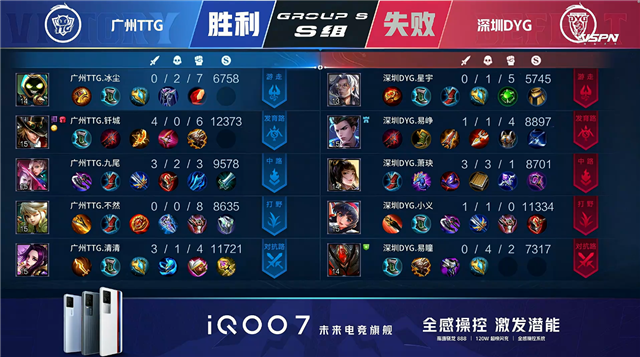 双方平稳开局。2分06秒深圳DYG拿下暴君。4分39秒野区团战广州TTG打出0换2。5分25秒中路团战深圳DYG击杀狄仁杰。5分57秒深圳DYG摧毁敌方下路外塔。6分48秒暴君处团战深圳DYG击杀橘右京并拿下暴君。7分13秒深圳DYG中路击杀沈梦溪。7分38秒上路团战双方1换1。8分40秒广州TTG拿下主宰。10分45秒广州TTG拿下暗影暴君。11分32秒广州TTG摧毁敌方上路外塔。12分18秒广州TTG下路击杀刘邦,深圳DYG拿下暗影主宰。12分32秒广州TTG摧毁敌方中路外塔。12分52秒广州TTG摧毁敌方下路二塔。14分15秒广州TTG野区击杀牛魔。14分25秒广州TTG摧毁敌方中路二塔。15分13秒广州TTG拿下暗影暴君。16分14秒广州TTG摧毁敌方航路外塔。16分40秒双方中路1换1。17分整广州TTG摧毁敌方水晶拿下比赛。