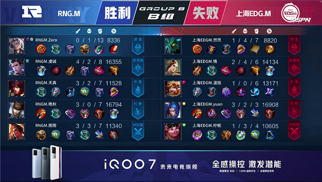 直播车讯 4月21日2021KPL春季赛常规赛第五周第一日第一场比赛,由B组的RNG.M对阵上海EDG.M,以下是本场比赛快讯。