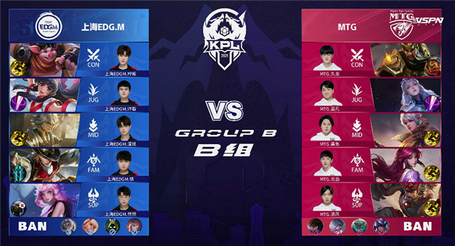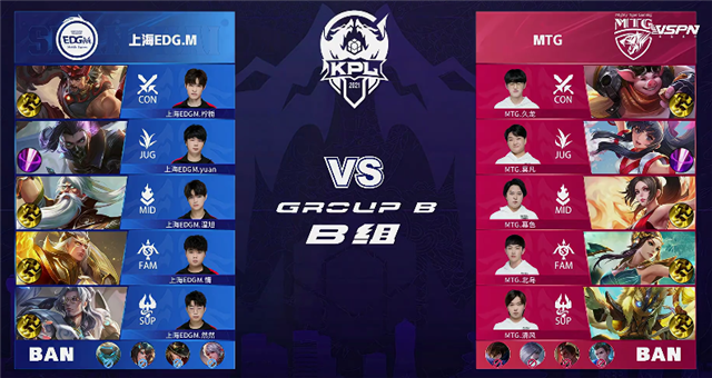 直播车讯 4月15日2021KPL春季赛常规赛第四周第二日第一场比赛,由B组的上海EDGM对阵MTG,以下是本场比赛快讯。