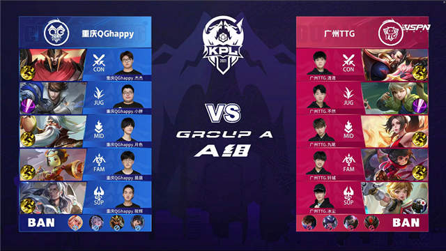 直播车讯 4月10日2021KPL春季赛常规赛第三周第四日第一场比赛,由A组的广州TTG对阵重庆QGhappy,以下是本场比赛快讯。