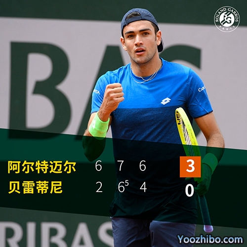 直播车讯:北京时间10月3日消息,2020年法国网球公开赛继续进行男单第三轮的较量,世界排名第186位的德国资格赛选手阿特梅尔三盘直落,6-2/7-6(5)/6-4淘汰了7号种子贝雷蒂尼,生涯首进大满贯16强,下一轮他将对阵西班牙人布斯塔。