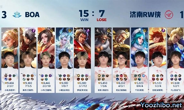 10分钟,济南RW侠拿下暗影暴君后持续进攻,BOA趁其队伍脱节果断反攻留下二人。13分钟,双方在河道发生团战,BOA昊然 (王昊然) 兰陵王绕后,全队收下三人。BOA趁势团灭对方击破水晶,来到赛点!