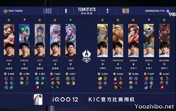 八分钟马来西亚MAS T外塔全破。十一分钟广州TTG凭借暗影先锋破掉中上高地,不断拉扯消耗对面状态后,直接点破水晶获得胜利。