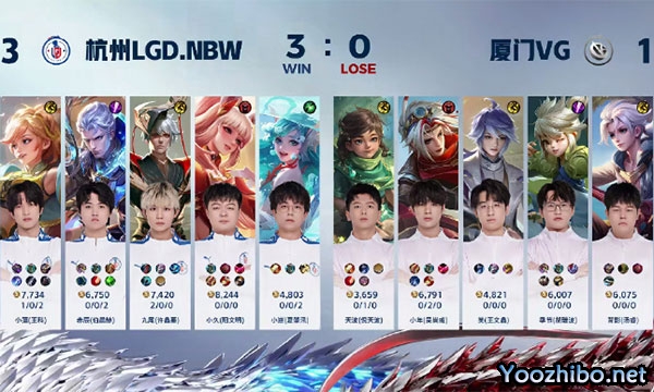 直播车讯 北京时间3月28日,2024KPL春季赛今日第二场比赛是由杭州LGD.NBW对阵到厦门VG!最终,杭州LGD.NBW3:1击败厦门VG。