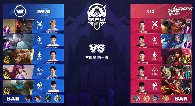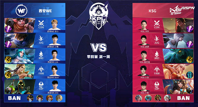 直播车 3月13日2021KPL春季赛季前赛第一周第三日比赛,由西安WE对阵KSG,以下是本场比赛快讯。