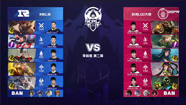 直播车 3月20日2021KPL春季赛季前赛第二周第三日比赛,由RNG.M对阵杭州LGD大鹅,以下是本场比赛快讯。