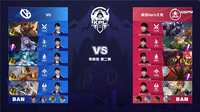 直播车 3月20日2021KPL春季赛季前赛第二周第三日比赛,由南京Hero久竞对阵VG,以下是本场比赛快讯。