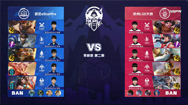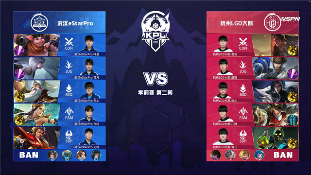 直播车 3月19日2021KPL春季赛季前赛第二周第二日比赛,由武汉eStarPro对阵杭州LGD大鹅,以下是本场比赛快讯。