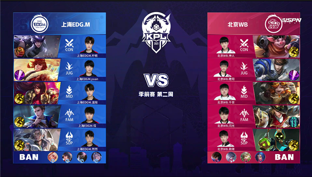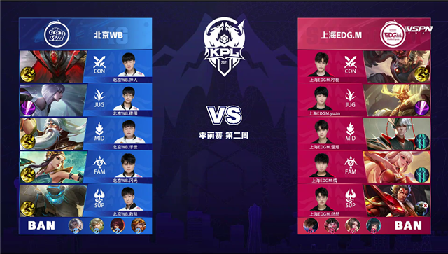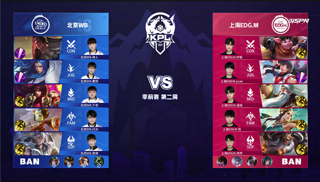 直播车 3月19日2021KPL春季赛季前赛第二周第二日比赛,由北京WB对阵上海EDG.M,以下是本场比赛快讯。