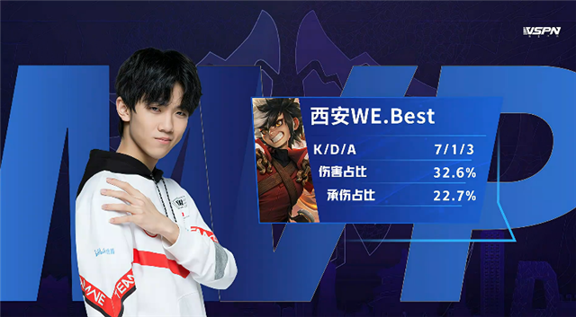 双方和平开局。1分13秒沈梦溪拿下一血。2分18秒猪八戒被击杀。2分45秒赵云反下蓝buff。3分57秒廉颇在上路一塔被击杀。4分47秒赵云拿下暴君。6分13秒马可波罗推掉上路一塔。6分35秒赵云推掉下路一塔。7分46秒西施在下野区被击杀。8分23秒西安WE推掉中路一塔。9分钟娜可露露拿下暴君,团战西安WE打出1换2。10分钟上路团战,西安WE打出1换3,马可波罗拿下双杀。11分28秒赵云拿下主宰。12分12秒西安WE强攻中路二塔,团战西安WE打出1换3。12分43秒,西安WE强攻水晶拿下本场比赛胜利。