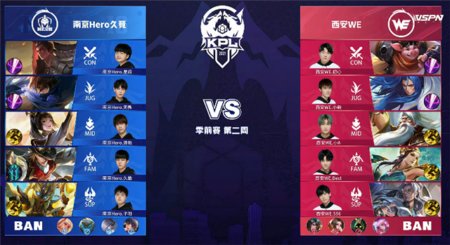 直播车 3月19日2021KPL春季赛季前赛第二周第二日比赛,由南京Hero久竞对阵西安WE,以下是本场比赛快讯。