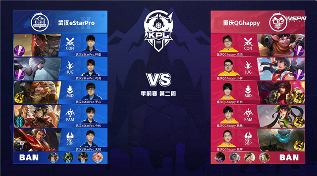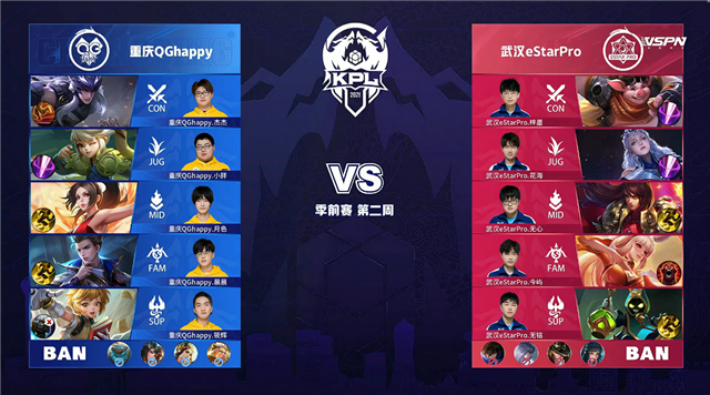 直播车 3月18日2021KPL春季赛季前赛第二周第一日比赛,由重庆QGhappy对阵武汉eStarPro,以下是本场比赛快讯。
