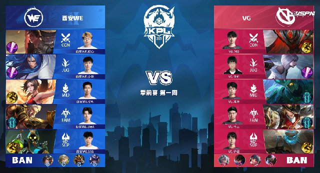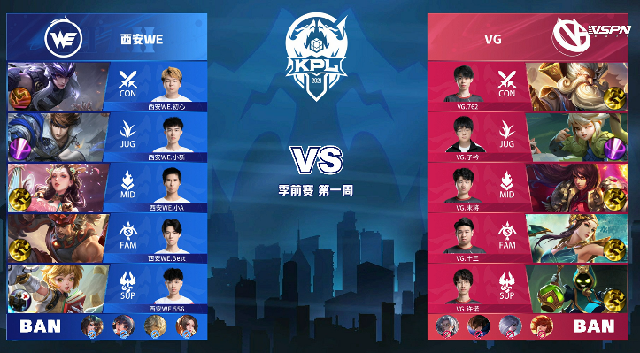 直播车 3月11日2021KPL春季赛季前赛第一周第一日比赛,由西安WE对阵VG,以下是本场比赛快讯。