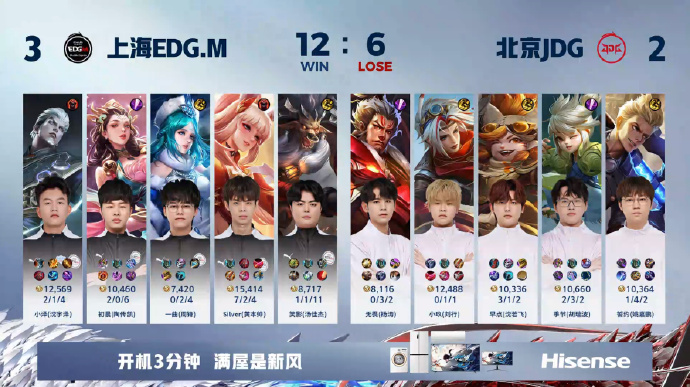 第二局,前期北京JDG取得小优势,但上海EDG.M围绕野区展开进攻,初晨的大司命让北京JDG难以应对,一曲的控制也多次掌控节奏。在决胜团中,上海EDG.M拿到暴君并打出0换4,成功扳平比分。本局MVP为上海EDG.M一曲的弈星。