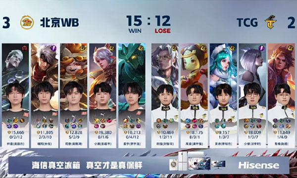 在第一局中,TCG充分发挥双边线的优势,通过不断拉扯让北京WB难以应对。关键时刻,TCG打出精彩团战,成功团灭对手,先声夺人。TCG的小楼(沈宇轩)操作夏侯惇表现出色,凭借其出色的控制和扛伤能力,当选为本局MVP。