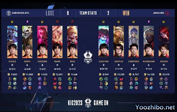 六分钟笑影太乙真人再次主动开团,济南RW侠强行越二塔击杀对方射辅两人,深圳DYG中路连破两塔,视野被全面压制。九分半笑影太乙真人带着队友在上路草丛埋伏,抓住时机留住多人,将深圳DYG大减员后,济南RW侠一鼓作气点破水晶,成功晋级2023年王者荣耀世界冠军杯小组赛!