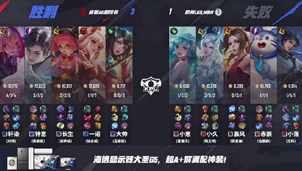 第一局,十分钟AG龙坑突进LGD被硬留黏至下路被打掉四人,十二分钟上路兵线进入先秒掉LGDNBW射手转战中路集火一波团战胜利点掉水晶,拿下本小局胜利!本局MVP为成都AG丶轩染(刘明)曹操!