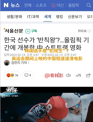 冬奥会进行期间,一部电影上线,2022年首部短道速滑题材的网络电影,聚焦冬奥冰雪题材,体现的是中国运动员在赛场上百折不挠、不惧困难的故事。而这期间就有一些韩国队的元素的,还引发了热议。