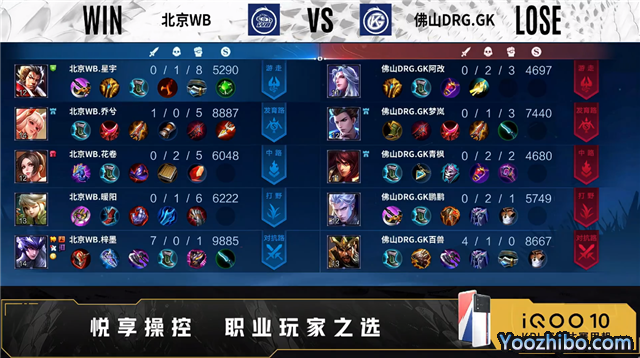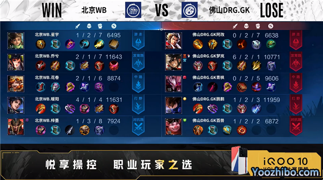 开局佛山DRG.GK入侵野区未果,北京WB打出0换2。1分24秒对抗路北京WB打出1换2。3分35秒北京WB对抗路击杀裴擒虎。3分48秒佛山DRG.GK发育路击杀马可波罗。5分20秒北京WB拿下暴君。5分48秒佛山DRG.GK中路下河道击杀东皇太一。6分32秒佛山DRG.GK野区击杀关羽。7分25秒北京WB拿下主宰。7分50秒双方野区游走互换。10分35秒发育路团战北京WB打出1换2。11分03秒北京WB摧毁敌方对抗路高地塔。11分44秒北京WB摧毁敌方发育路二塔。12分14秒北京WB拿下暗影暴君。15分12秒北京WB拿下暗影主宰。16分10秒对抗路团战佛山DRG.GK打出2换5。16分33秒北京WB摧毁敌方发育路、中路高地塔。19分18秒野区团战北京WB打出1换3。19分41秒北京WB摧毁敌方水晶拿下比赛。