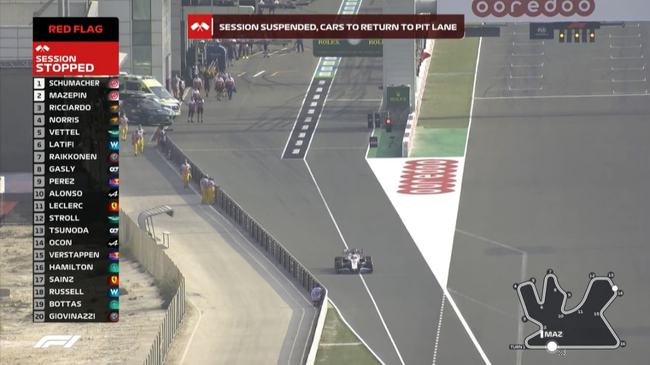 直播车讯 北京时间11月20日傍晚19:00,卡塔尔大奖赛第三次自由练习赛正式开始。三练起表不久,马泽平准备驶上赛道时赛车出现故障,停在了维修区出口,赛会出示红旗,5分钟后恢复。
