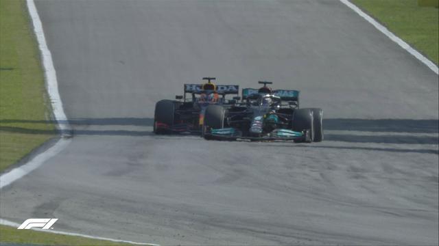 换胎后的汉密尔顿连续刷新最快圈速,将与维斯塔潘的差距缩小到1.2秒。第48圈,汉密尔顿追到维斯塔潘的身后,试图超车,维斯塔潘使用晚刹车,直接和汉密尔顿一起缠斗到缓冲区里,最终还是维斯塔潘守住了自己的位置。