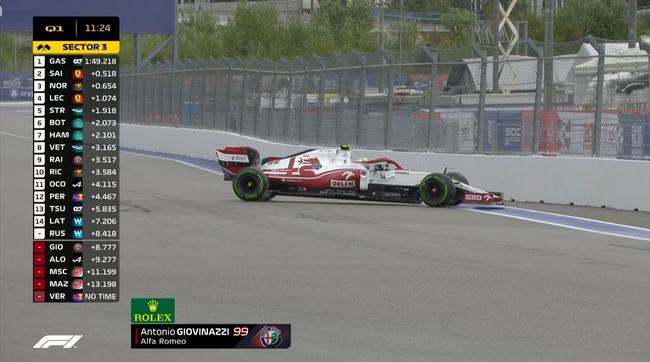 Q1剩余11分钟,吉奥维纳兹在16号弯打滑,所幸没有发生碰撞,短暂引发赛道黄旗。