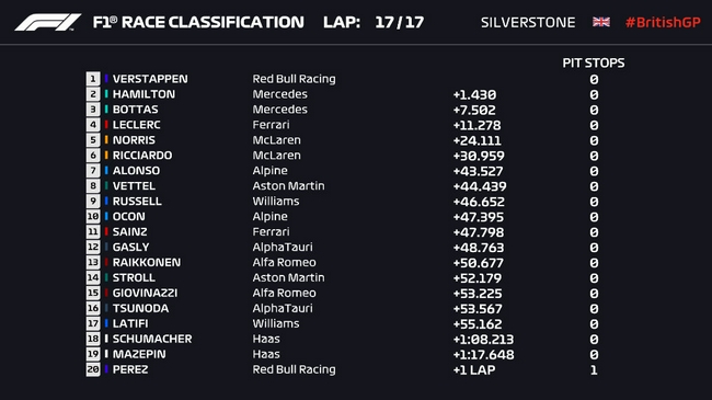 2021F1英国大奖赛排位冲刺赛最终成绩:
