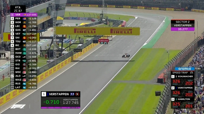 直播车讯 北京时间7月16日晚,2021F1英国大奖赛第一次自由练习赛在银石赛道战罢。红牛车手维斯塔潘以1分27秒035的成绩排名第一,诺里斯落后0.779秒排名第二,而且他的成绩是使用中性胎做出的。汉密尔顿排名第三,落后维斯塔潘0.780秒。P4-P10分别为:勒克莱尔、博塔斯、塞恩斯、维特尔、佩雷兹、里卡多和奥康。梅奔和法拉利包揽了第三至第六名。本站排位赛将于北京时间7月17日凌晨01:00进行。