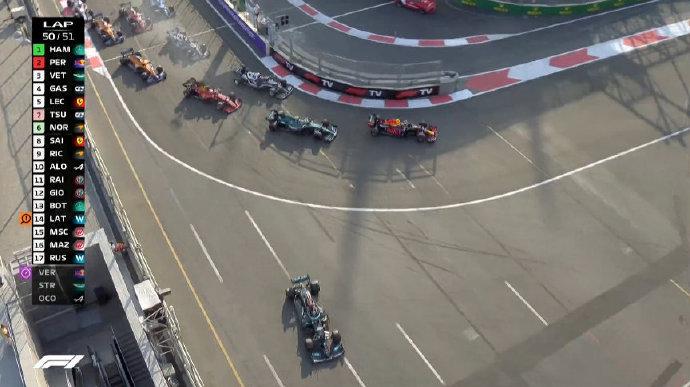 20圈比赛结束之后,赛道上前五位的车手依次是维斯塔潘、佩雷兹、汉密尔顿、斯特罗尔和加斯利。