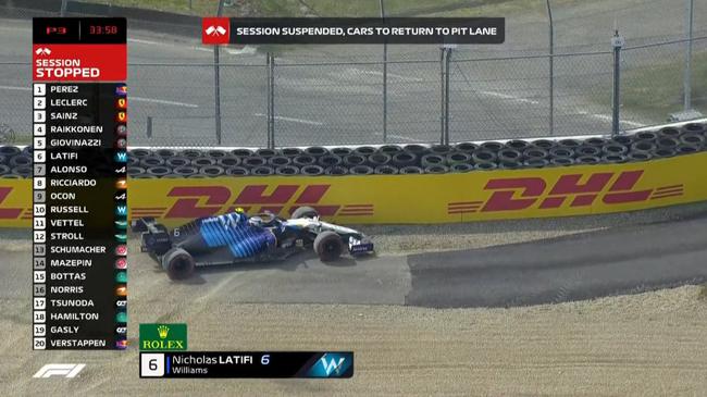 与昨天的一练和二练相似,三练同样意外频发、事故连连。比赛倒计时还剩34分多钟时,拉提菲冲出赛道撞上护墙,引发红旗,同时赛车前翼受损,被迫回到维修区。