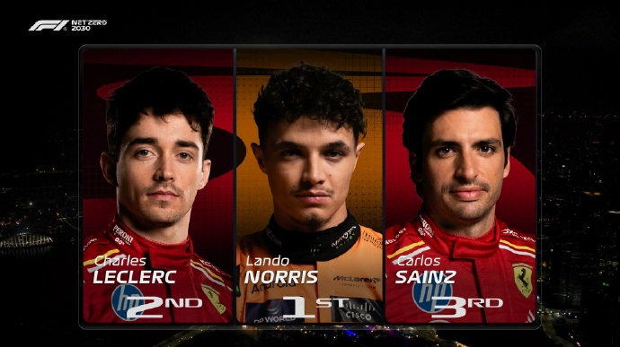 直播车讯 北京时间09月20日,2024F1新加坡大奖赛第二次练习赛最终成绩依旧是迈凯伦和法拉利最快,诺里斯1:30.727拿下头名,勒克莱尔落后0.058秒。第三名的塞恩斯与诺里斯的差距已经在0.6秒以上。