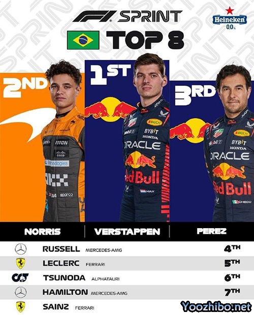 直播车讯 北京时间11月5日,2023赛季F1巴西大奖赛冲刺赛在英特拉格斯赛道举行,最终维斯塔拿下冲刺赛的胜利,诺里斯和佩雷兹分别列第二和第三,第四到第八名依次为:拉塞尔、勒克莱尔、角田、汉密尔顿和塞恩斯。